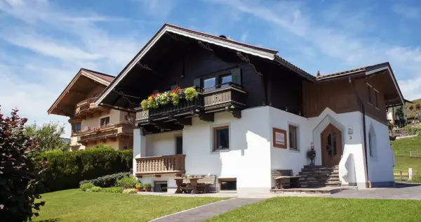 Großer Südbalkon mit Sitzgelegenheit und atemberaubendem Panoramablick auf den Wildseeloder und die Kitzbüheler Alpen